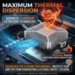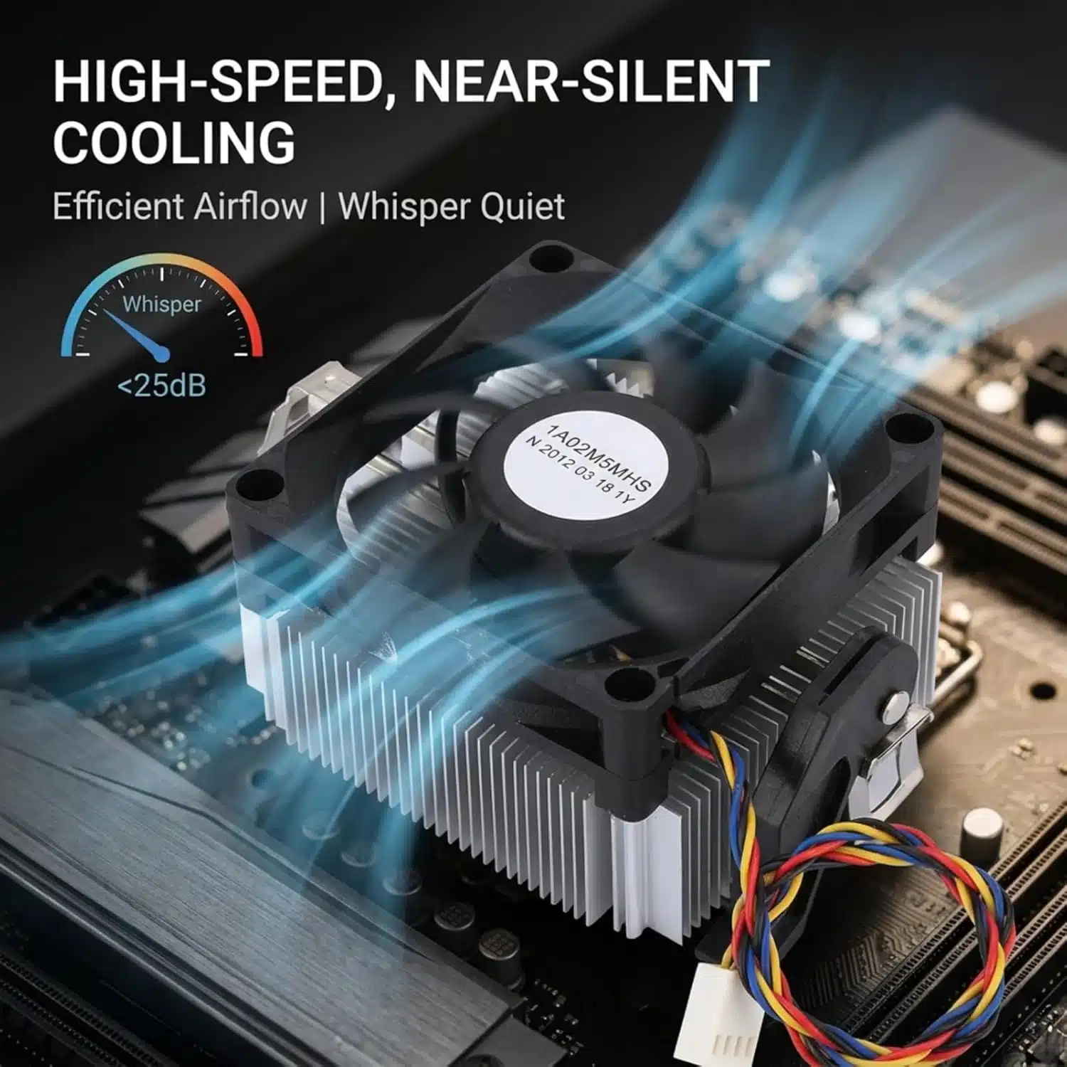 With a compact aluminum heatsink and high-speed fan, this cooler delivers strong airflow performance while maintaining low noise levels. The 4-pin motherboard connector supports automatic speed control, allowing dynamic adjustment based on system temperature.